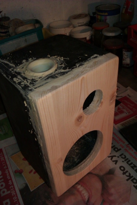 Na konštrukciu boli použité drevené OSB dosky spracované do tvaru kvádra. Na prednú stranu drevenej krabice boli vyvŕtané diery pre reproduktory. Na bok krabice pripadla bassreflexová trubica, ktorá zabezpečila zvýraznenie basov. Na zadnej stene sú umiestené vypínače pre dobíjanie jednotlivých batérií, hlavný vypínač, aux vstup a indikátor stavu batérií. Všetky vypínače sú pre prehľadnosť označené nálepkou s popisom.