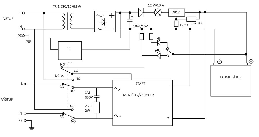 K môjmu meniču som pridal aj relé ktoré bude prepínať medzi napájaním z autobatérie a napätím zo siete automaticky keď dôjde k odstávke elektrickej energie.
